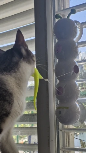 Offrez à votre félin des heures d’amusement avec ce jouet automatique pour chat. Conçu sous forme de colonne à ventouses, il s’accroche facilement aux surfaces lisses (sol, mur, vitre) pour rester bien en place. Grâce à son système motorisé, un fil équipé d’un leurre passe à travers différents trous, éveillant l’instinct de chasse et stimulant l’activité physique de votre compagnon. Fonctionnant avec une batterie rechargeable, ce jouet est à la fois écologique, pratique et idéal pour divertir votre chat même en votre absence.